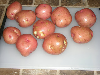 Wash all potatoes and remove the little ‘spud’ parts from the potato eyes.