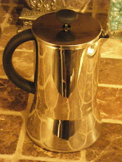 I played copy cat to The Adolphus and treated myself to some coffee and Sprinkles after a delicious winter dinner of spicy kale, roasted eggplant and portabella soup. My good friend Mr. HB has known me and my Starbucks love aka addiction (I would be sent to rehab if coffee were a drug) for a long time. He gave me a coffee lover’s dream for Christmas… a Bodum French press! This is mine! Isn’t it pretty?!
