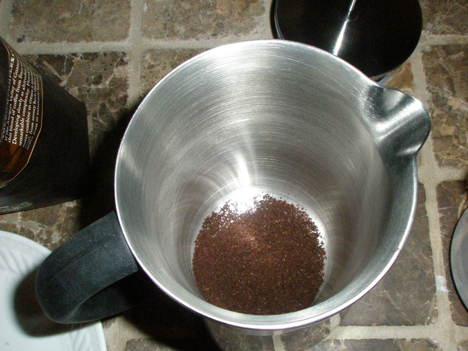 - Heat water in the microwave (time saver!) and then add to the coffee grounds.