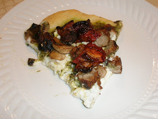 - Slice and mangiare! This is AMAZING! The soft goat cheese against the texture of a crispy crust with the zang from the tomatoes is fabulously delightful!