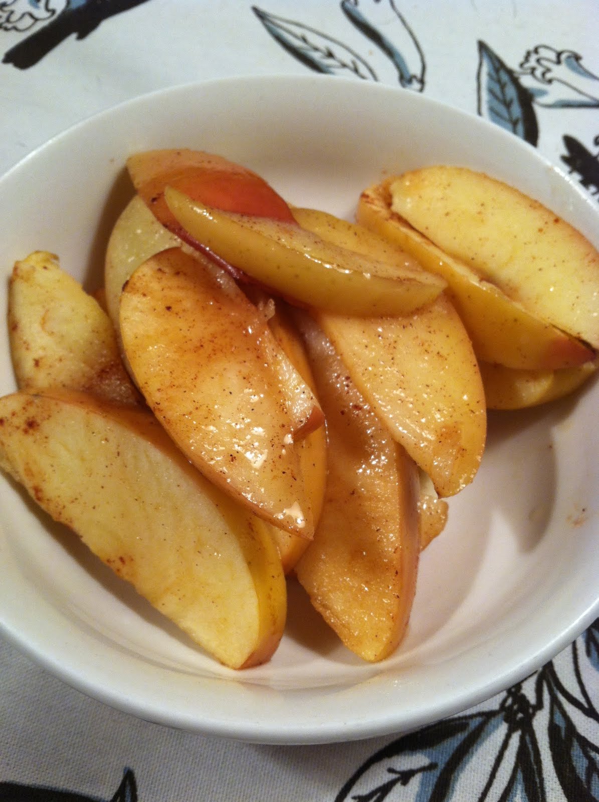 • Sprinkle the cinnamon and one Splenda packet on all the apples. Remember that a little bit of cinnamon goes a ALONG way!