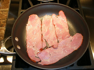 • Cook your protein in a pan- this is my turkey bacon. I like the organic kind that comes with some fat as added flavor but you can substitute for something liter if you are watching your weight.