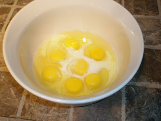 • Add eggs and milk into a large mixing bowl.