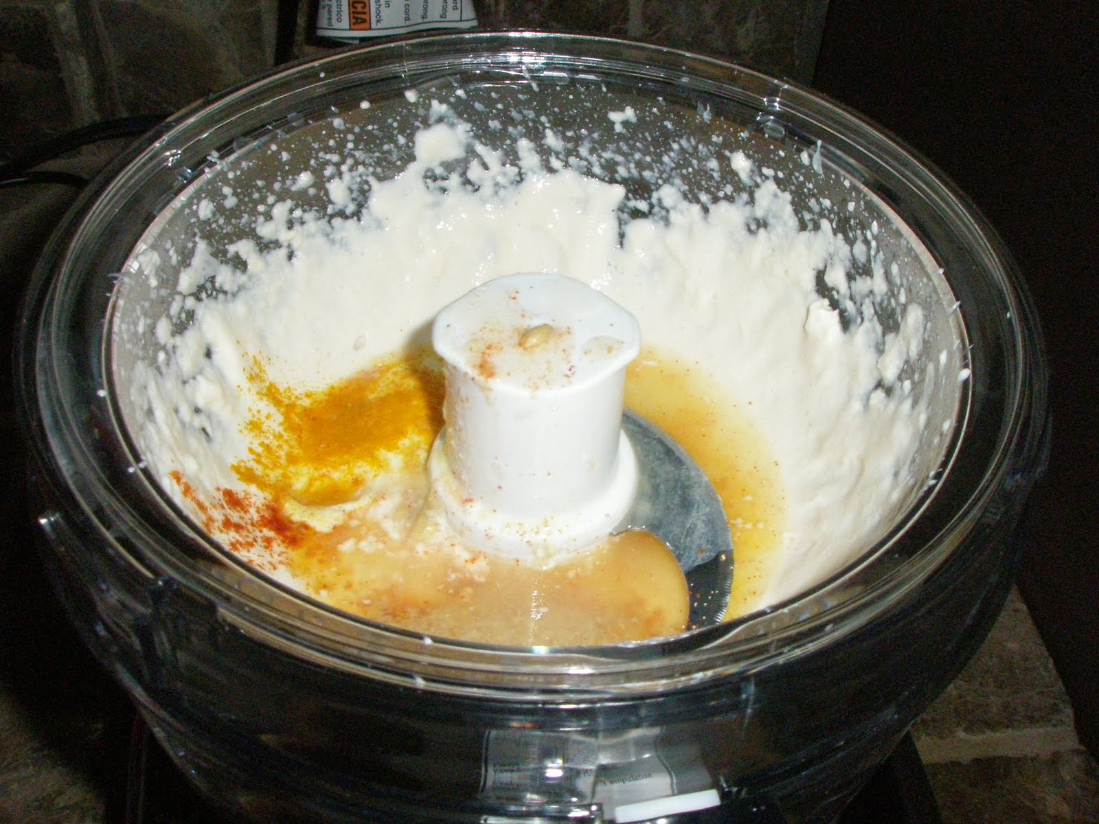 - Add the cayenne pepper, turmeric, yeast, lemon juice and oil into the food processor with the tofu.