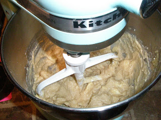 - Use the mixerโs flat beater to combine all ingredients. First set on stir and then gradually increase the speed. Mix until the batter is liquefied but you can still see banana chunks.