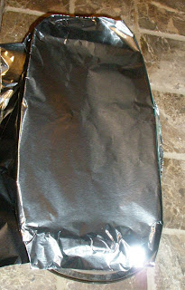 Then cover the loaf pan with foil and bake at 350 degrees for about 30 minutes. Uncover and bake for another 25 minutes.