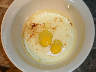 • Put all wet ingredients into a large mixing bowl and then whisk together.