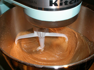 • Combine the wet ingredients into the mixer and mix away for about three minutes. (Make sure you use your flat beater instead of the whisk attachment.)