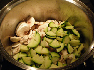 • First, chop all your veggies — onion, mushrooms, kale and zucchini. This will make everything go much faster and leaves some time for an Irish jig!