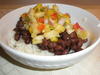 Call the pool boy! It’s time to make coconut rice with black beans and pineapple mango salsa!
