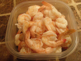 • Then drain the shrimp and put them into a Tupperware container. Refrigerate for 45 minutes to an hour. Remove the shrimp once they are cool.