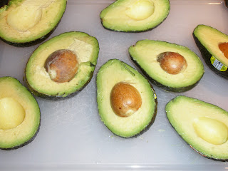 • First, peel and pit your avocados. I found the trick to peeling is cut them in halves and use a spoon to separate the skin and inside without making a mess. Mash them in a small mixing bowl to make the guac!