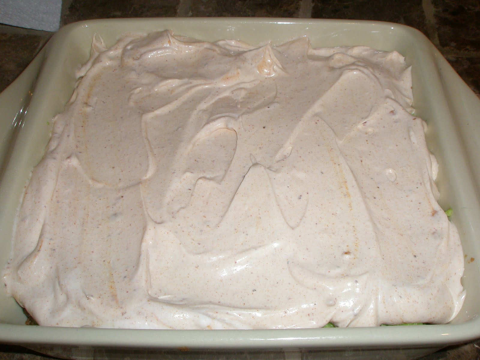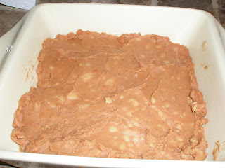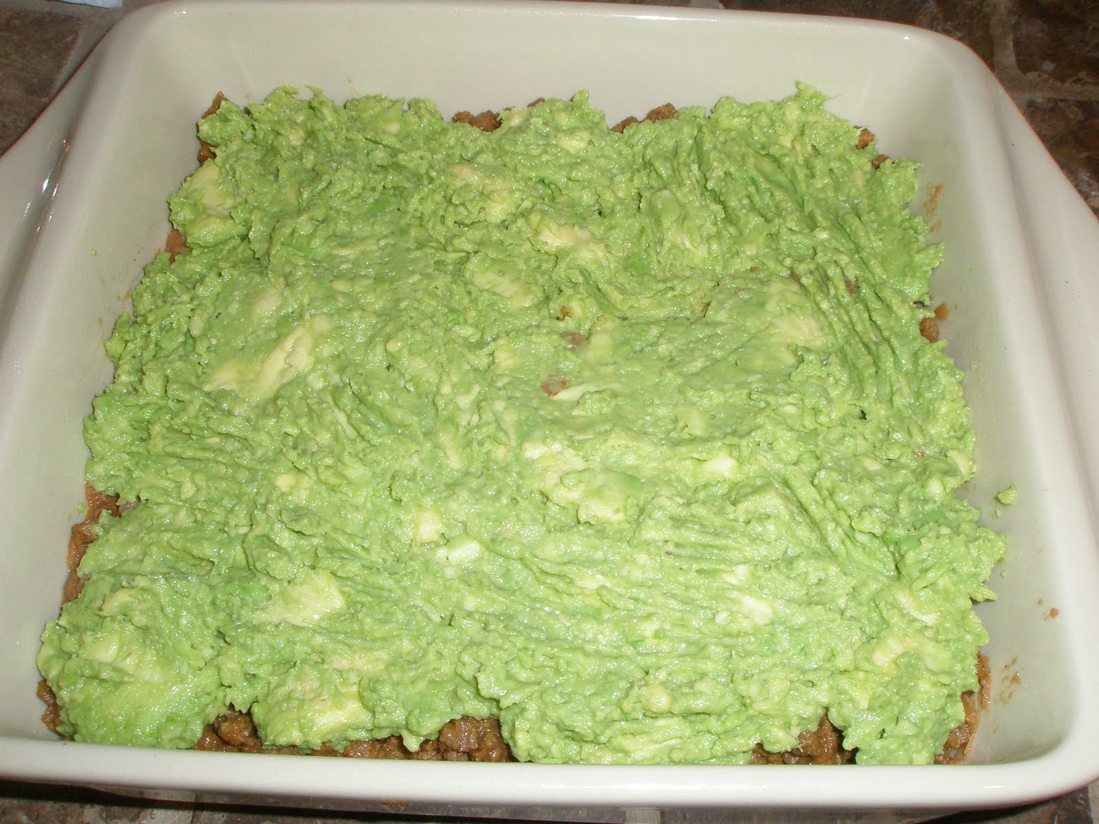 • Spray an 8Γ—8 baking pan with EVOO and evenly spread the refried pinto beans along the bottom of the pan.