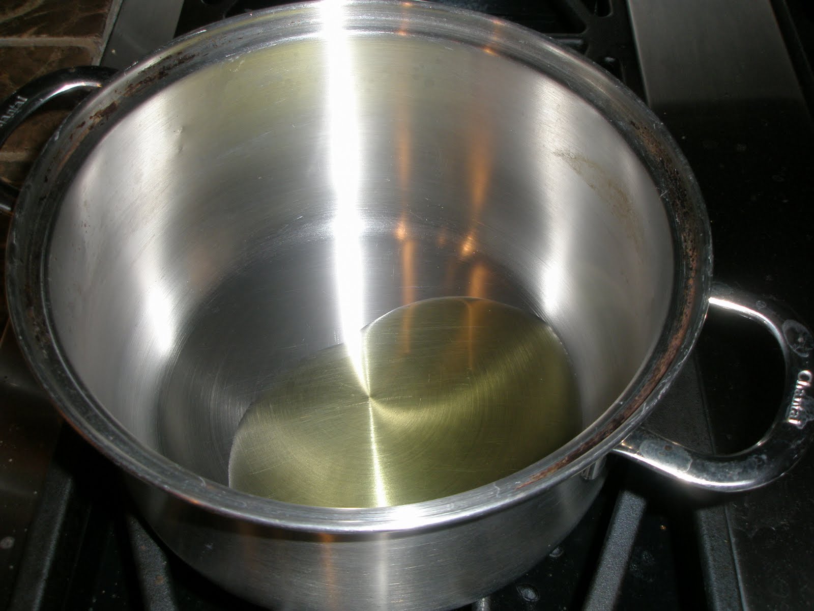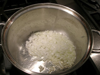 Add the EVOO to your pot and put on medium heat. Let the oil get hot and add the onion after the oil is hot — about 4 minutes.