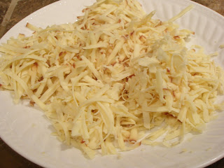 Take the cream cheese out of the fridge and let it sit on the counter- you’ll want it to be soft when you add it to the mixture later. Then grate the entire block of Gouda.