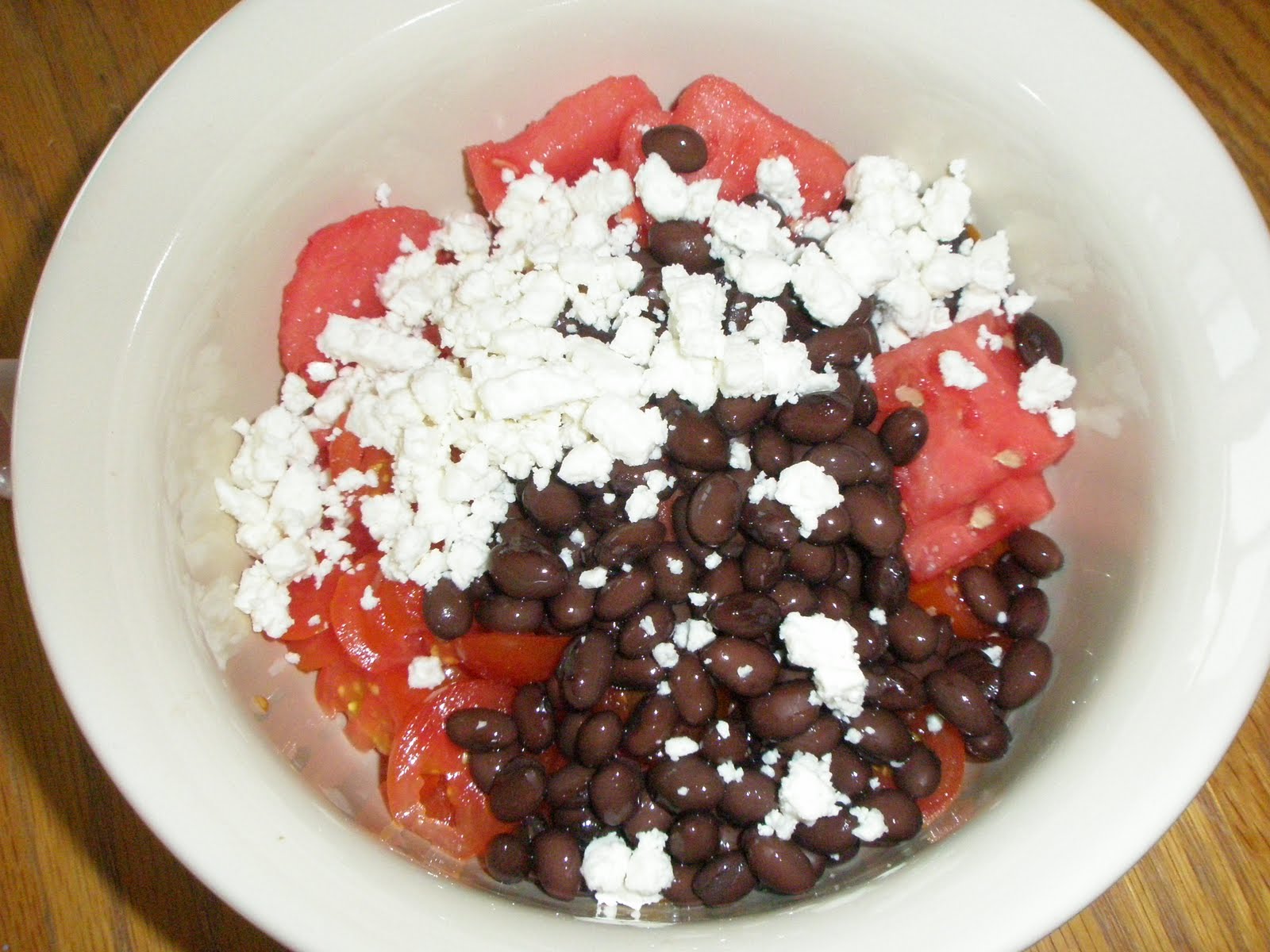 Earlier this week, I dinnered with my dear college friend Mrs. H and saw a sign at a neighboring posh eatery advertising a tomato and watermelon salad. That sounded so good to me and without seeing or tasting the dish, I have been determined to make a Hollyized version of it! I know it sounds silly but I have spent a majority of the week thinking of how I could make mine and how it could be served. (Yes, how nerdy!)